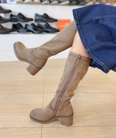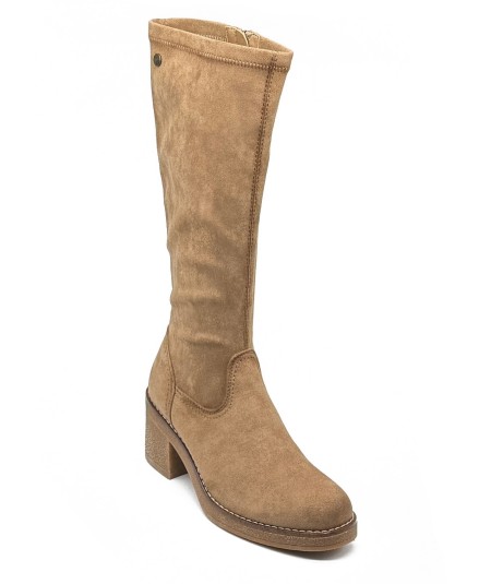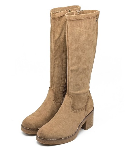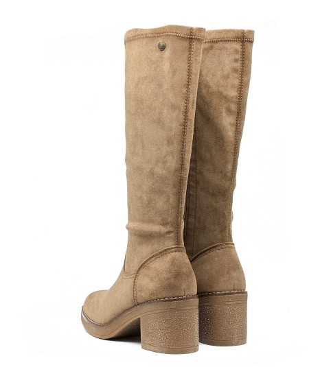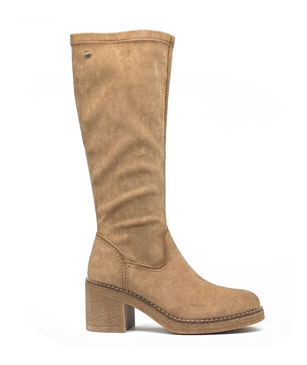 Botas de caña alta color beige de tacón de goma, de Refresh