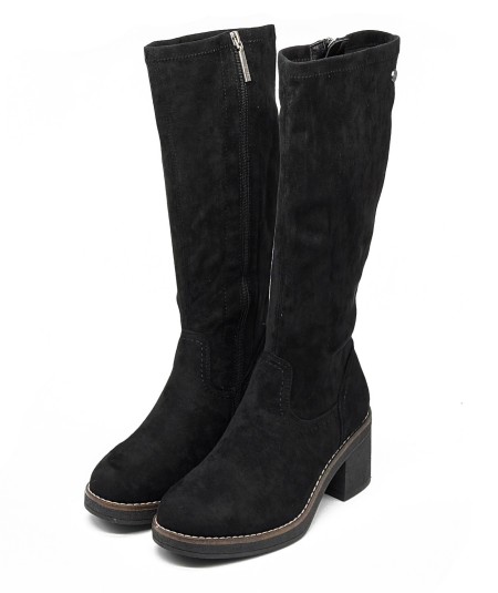Botas de caña alta color negro de tacón de goma, de Refresh
