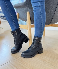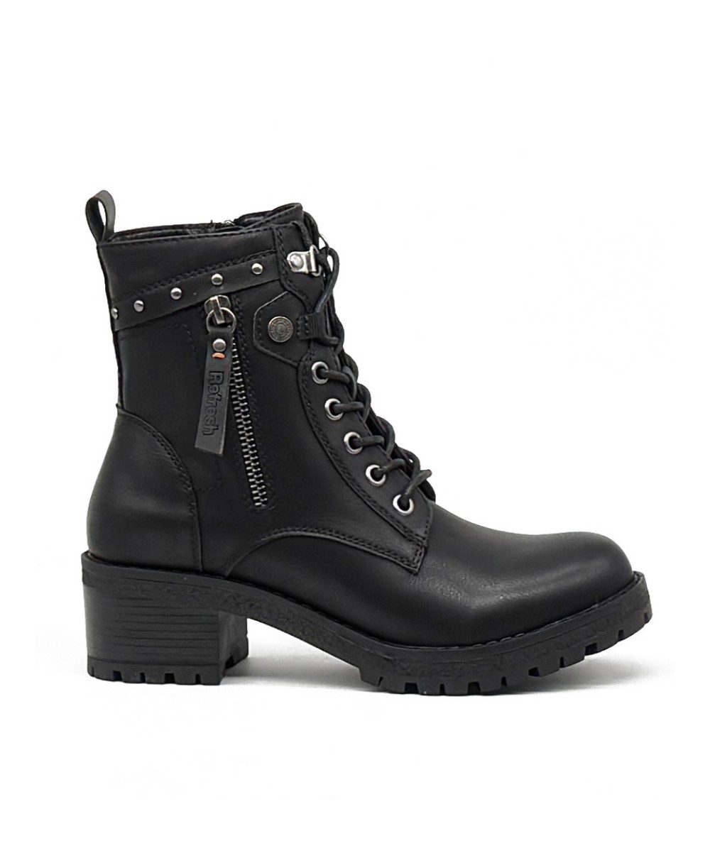 Botines negros cortos de de cordones y cremallera, de Refresh