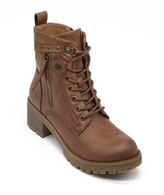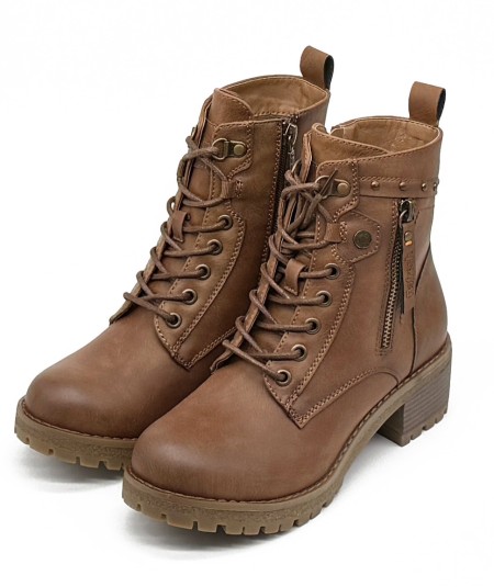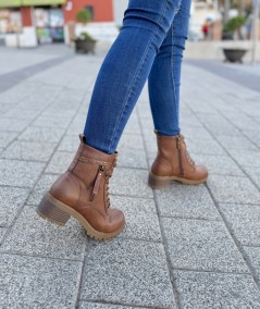 Botines camel cortos de de cordones y cremallera, de Refresh