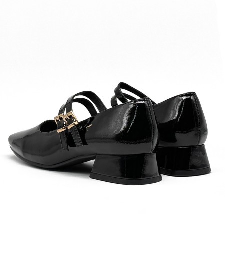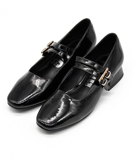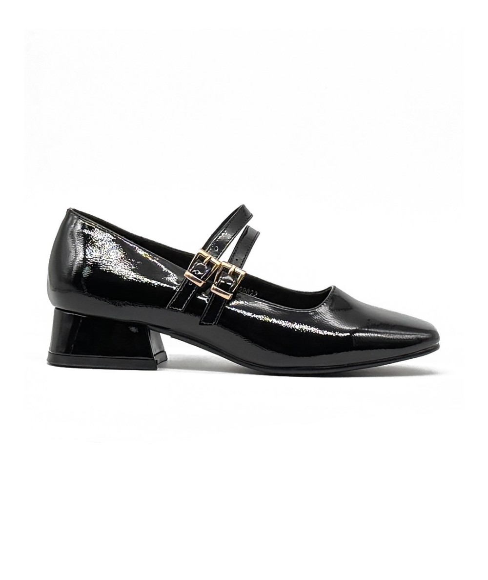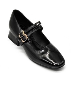 Merceditas de charol negro con doble hebilla, de D'Angela