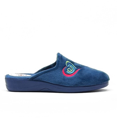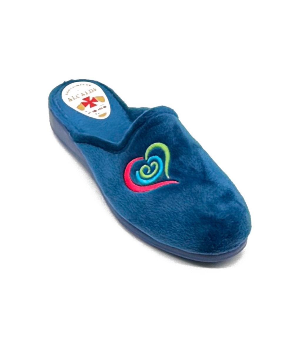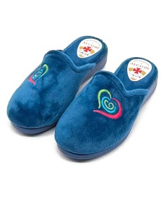Zapatillas de casa de invierno para mujer, en tejido suapel color azulón. Cuña de altura mediana y suela antideslizante. La plantilla es muy suave y del mismo tejido que la pala, con un poco de acolchado.