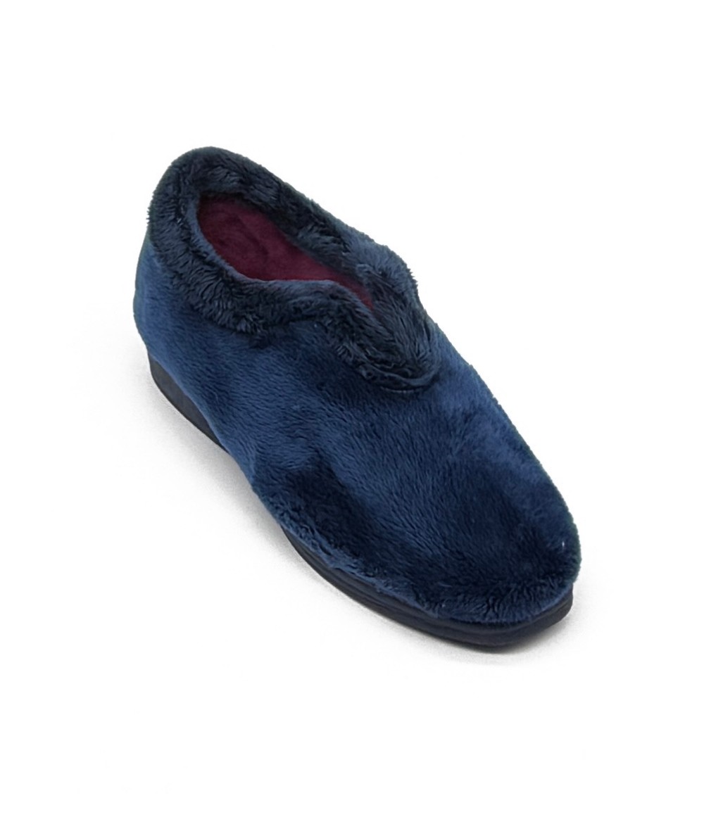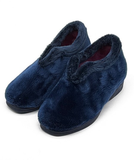 Zapatillas para invierno cerradas y un poco abotinadas con apertura frontal para poner y quitar sin problema. Pies calientes y confortables en todo momento.