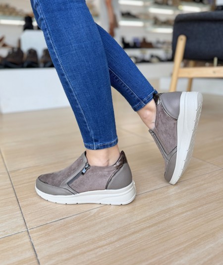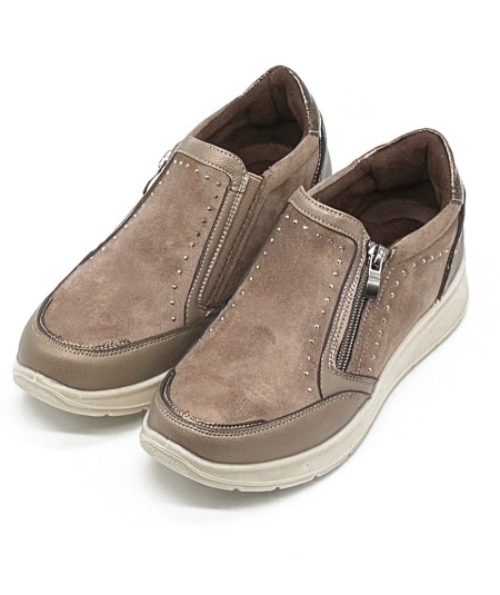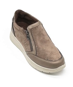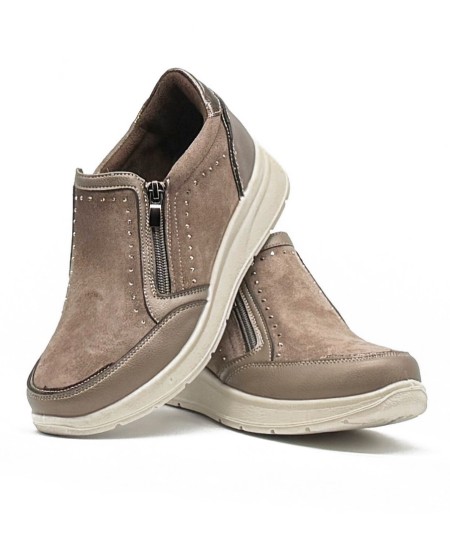 Zapatos con cremallera cómodos en antelina color taupe, de Amarpies