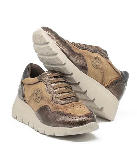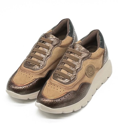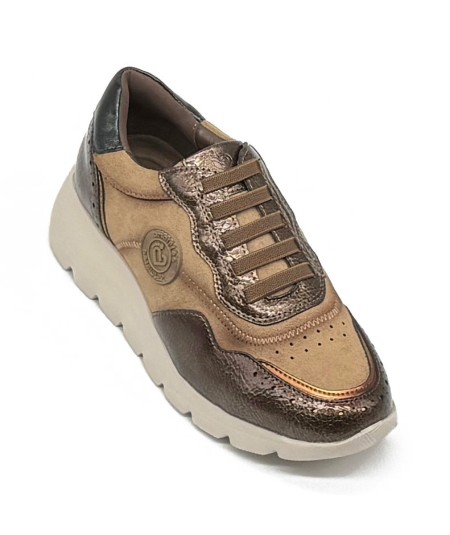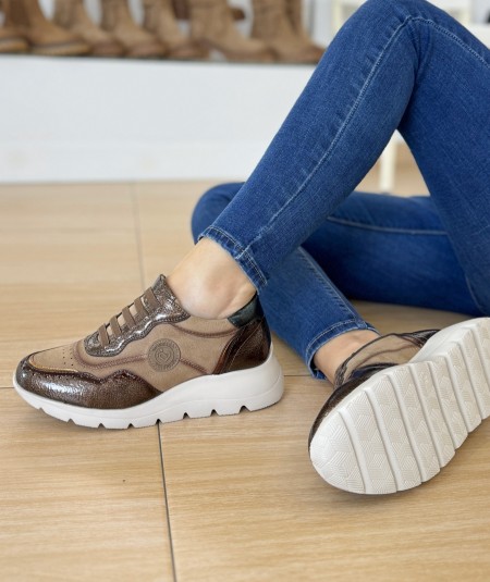 Zapatos estilo urbano con elásticos y suela alta, en dos tonos marrones